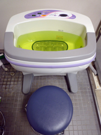 温浴治療+ジェット噴流によるマッサージ治療です。噴流ノズルから、無数の気泡を噴出し、マッサージ作用と温熱作用により、患部を深く芯から治療します。 |
